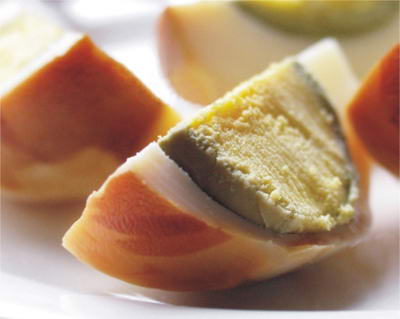制作方法:先把鸡蛋逐只洗涤干净,放入锅中加水煮至八成熟时捞出,放在冷水中浸泡2分钟,取出,每只蛋上敲破几处后用双手搓一下(使调味能渗入蛋壳内),放入锅内。每1000克鸡蛋需加入茶叶1小勺、盐2小勺、酱油100克、花椒茴香少许,用小火炖煮1小时左右即成。这样煮出的茶叶蛋鲜香入味。