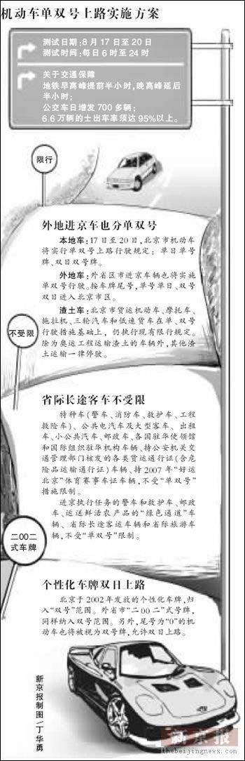 据市交管局副局长翟双合介绍,17日至20日每天6时至24时为测试时间,在此期间,全市机动车实行单双号行驶,单日单号牌行驶,双日双号牌行驶,个性化号牌按双号管理。