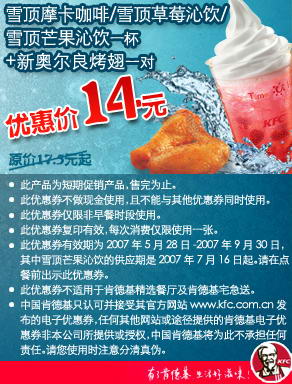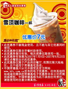 肯德基2007年8月,9月,10月优惠券 (有效期:2007年9月30日)