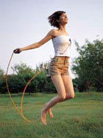 跳绳 最狂飙的减肥 跳绳是最狂飙的减肥法(新浪伊人风采配图来源:网妖) 减肥指数 ☆☆☆☆ 兴趣指数 ☆☆☆☆ ●推荐理由 传统的减肥运动,简便,有趣,不受气候的影响。跳绳花样繁多,可简可繁,随时可做,对女性尤为适宜。从运动量来说,持续跳绳10分钟,与慢跑30分钟或跳健身舞20分钟相差无几,可谓耗时少,耗能大的需氧运动。可消除臀步,和大腿部的多余脂肪,同时有放松情绪的积极作用,有利于心理健康。 ●体验者说 子聪25岁 我每天晚上就在自家的花园里练习跳绳,时间不长,每次15分钟,这种减肥方式既方便又有效,也不需要我专门找地方。我的性格比较好动,这种激烈的运动很适合我的。 ●小编提醒 锻炼时配合节奏强劲的音乐,提高锻炼的兴趣,达到事半功倍的效果。初学时,仅在原地跳1分钟;3天后即可连续跳3分钟;3个月后可连续跳上10分钟;一次跳半小时,就相当于慢跑90分钟的运动量,已是标准的需氧健身运动。 ●注意事项 跳绳减肥看似简单,其实也存在一些危险性。选择一条合适的跳绳尤为重要。购买时要根据自己身高进行挑选,如刚开始练习跳绳,最好选择透明实心的,较细并且有一定重量的塑料跳绳。因为对初学者来说,跳绳要有一定的重量才容易挥动。(文/若纳) |