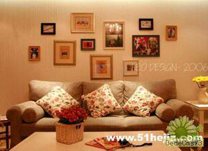 黑白艺术框组合 从前客厅讲究在视听区设计背景墙,现在乾坤调转,让我们把视线集中在沙发后面吧。黑白的艺术摄影作品搭配艳丽色彩的沙发,本身就是一幅美丽的装饰画。 黑白照片是讲故事的高手,所以,你选择的装饰框就需要简单再简单,让迷人的情节娓娓道来,体会其中的意境,感悟事件和人物当时的心情。选择画面内容需要分类,比如人物、事件、风景、静物,悬挂的时候也要按此划分,避免故事情节相互干扰。情节趋同的,可以组合成一个小集体,就像一本书,有段落、章节,整齐有秩序。 尺寸大的画框,可以用细绳挂在墙面的钉子上,尺寸小的,采用背胶的方法,也能悬挂。摄影作品一般都会装进玻璃镜框,特别是那些珍贵的历史作品,更要仔细保存。尽量保持装饰框和墙面帖合,角度会产生玻璃面反光,影响效果。 用色彩的和谐与对比创造简约家居