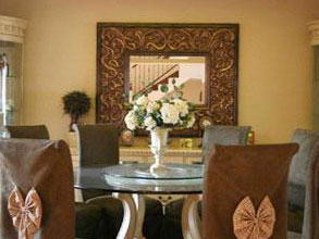 华丽镜面组合 旅行时收集的装饰框,不必为风格、材质和颜色的冲突而担心,把它们镶嵌上镜子,集中展示在墙面上,保证成为居室中的亮点。注意房间窗帘的遮光度,以免镜子反射光线刺激眼睛。 装饰框的选择面非常广,简约木质的,复古铁艺的,纯铜的或漆质的。颜色最好以中性为主,留给形状和材质更多的空间。 游走在奢华与朴质之间的视觉秀