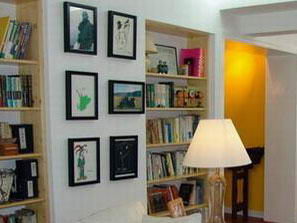 抽像简约框组合 抽象图案的画很适合阅读角落,不会很张扬,相反,你可以阅读空隙或者喝茶的时候望着那些画畅想。画的色调从家具或者地毯装饰中选择抽取,保证不会出搭配的错误。 可以用在墙面上钉层板的方法解决挂画的问题,层板的宽度至少要有10厘米,长度依墙面而定。这样,你不需要把墙面摧残得千疮百孔,还方便根据心情随时调整画的位置或者更换新购置的作品。画的摆放要根据尺寸和内容,过于零乱或者死板都影响效果。 简单美式生活