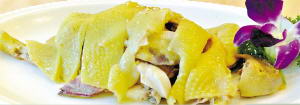 广东人常说“无鸡不成宴”。而白切鸡是粤菜的鸡肴中最普遍的一种,这种吃法不但能体现出鸡的真味,而且其制作亦不复杂。今天介绍的是一种家庭的做法。白切鸡属于浸鸡类,清人袁枚《随园食单》称其为白片鸡,并说“单上列鸡菜数十款,用于蒸、炮、煨、卤、糟的都有,列以首位就是白片鸡”。 材料:鲜鸡、芝麻、姜茸、盐、姜片、葱段、花生油。 做法:鸡去毛、内脏,洗净。开锅,把水烧开,加姜片、葱段、盐,将火调至水微沸状态(虾眼水),放入鸡浸煮约十五分钟左右(视乎鸡身大小),其间不时将鸡从水中提出一至两次,把鸡腔内的水倒出。当鸡熟时,立即把鸡放入用盐调至咸味适度的冰水中足够冷却,拿出后待表皮干,斩件,撒上适量芝麻,食时配以姜茸、熟油即可。 |