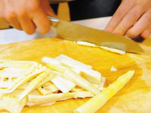 厨神贴士: 1、辣豆瓣已咸香十足,春笋炒好后,要先试味后放盐调味,避免成菜过咸。 2、春笋切成片后,要先放入沸水中烫一下,以去除笋特有的苦涩味。 3、春笋富含水分、植物蛋白、钙、磷、铁和纤维素等,常吃春笋可通血脉、化痰涎和消食胀。 4、竹笋性属寒凉,又含较多的粗纤维和难溶性草酸钙,尿道结石 、肾结石、胆结石患者不宜多食,还有小孩和老人也应慎食。 |