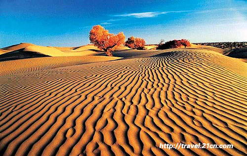 大流动沙漠。“塔克拉玛干”维吾尔语意为“进去出不来”,又称“死亡之海”,为世界上最为干旱的地区之一。