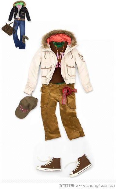 一身运动款的装扮应该也是不错的选择,棕色的帆布鞋与帽子呼应,这样的造型是运动MM的最爱。 |