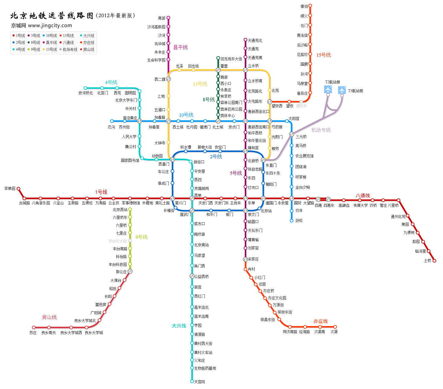 推荐:北京地铁运营线路图最新版 北京地铁运营线路图2012年版 北京地铁线路图2012年最新版 (点击查看大图) 截至2012年1月1日,加上昨日地铁8号线二期北段、15号线一期东段、9号线南段,以及房山线大葆台至郭公庄区间等三条新线开通试运营,北京市轨道交通全路网线路达到15条,运营里程从336公里增至372公里,车站达到217座,日均客流预计突破700万人次。目前,纽约、伦敦等国际化大都市地铁运营里程与北京相近,北京用40年的时间走完了发达国家百年地铁历程。北京地铁目前共运营15条线路名单如下: 北京地铁1号线(北京地铁) 北京地铁2号线(北京地铁) 北京地铁4号线(京港地铁) 北京地铁5号线(北京地铁) 北京地铁8号线(北京地铁) 北京地铁9号线(北京地铁) 北京地铁10号线(北京地铁) 北京地铁13号线(北京地铁) 北京地铁15号线一期(北京地铁) 北京地铁八通线(北京地铁) 北京地铁机场专线(北京地铁) 北京地铁昌平线(北京地铁) 北京地铁大兴线(京港地铁) 北京地铁亦庄线(北京地铁) 北京地铁房山线(北京地铁) 另有四条地铁新线力争2012年通车 北京市重大办相关负责人表示,目前北京还有在建轨道交通线路10条,预计今年,6号线一期、8号线全线、9号线全线和10号线二期,都将建成通车。 据介绍,这10条在建线路共196公里,包括6号线一期和二期、7号线、8号线二期南段、9号线北段、14号线、15号线一期西段、10号线二期、昌平至8号线联络线、S1线西段和西郊线。力争今年开通6号线一期、8号线二期南段、9号线北段和10号线二期。 据悉,地铁6号线是与1号线平行的贯穿东西的轨道交通骨干线,西起石景山区苹果园站,东至通州区东小营,并与S1线相连到达门头沟新城,其主要作用是承担京城东西方向的客流,为地铁1号线分担客流压力。一期工程西起海淀区五路居,东至朝阳区草房。8号线二期南段通车,从回龙观能乘地铁直接到美术馆。9号线北段开通后,房山线与9号线南段将结束“脱网”运行的状态,正式加入北京地铁大网络。而10号线二期通车后,地铁“二环”将形成。 但这4条线路是建好一条开通一条,还是年底“扎堆儿”通车,现在还无法给出确定的答案。目前来看,9号线北段进度最快。 |