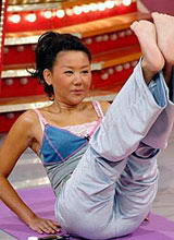 蓝心湄做瑜伽 蓝心湄因主持TVBS-G《女人我最大》,趁机从黄仲崑女友LuLu身上学得了瑜伽术,即便暴饮暴食,身材也不会变形,堪称圈内女星的 奇葩。蓝心湄的瑜伽术,在家都能做,她笑说:“我都在家边看电视边做瑜伽,前阵子意外发现不穿内衣,胸部竟快垂到膝盖,感觉有老化现象,但勤练瑜伽后,身 材明显恢复年轻。” 蓝心湄拼酒豪气,甚至千杯不醉,不过担心酒后伤身,她竟从瑜伽上找到健康真谛,她说:“我现在练瑜伽上了瘾,连我妈妈都是忠实伙伴,过年如果吃太饱,我就和我妈妈来个母女双瑜伽,瘦身不易胖。”