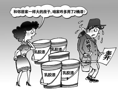 开“大处方”少用多买 “同样是120平的房子,为什么邻居家刷乳胶漆只用了3大桶,而我家却用了5大桶?”李女士很困惑。经过一番调查核实,原来是油漆工在给李女士开具采购清单的时候故意多开了2桶,而这多出的2桶“去向不明”。 内行破解这种开“大处方”的现象在包工包料的工程项目中最容易出现,往往由于业主对装修知识缺乏了解,不能大概估算出材料使用量,而只能听由施工方摆布。某些不法装修公司及工人为了蝇头小利,而在给业主开采购清单时故意多开,实际使用过程中剩余的部分往往被施工方据为己有,拿去卖钱。 拆招遇到这种情况一定要多向有经验或者正在装修的业主沟通请教,对发现使用量超标的材料仔细调研,并尽量派人现场监督工人施工,以避免材料浪费。 |