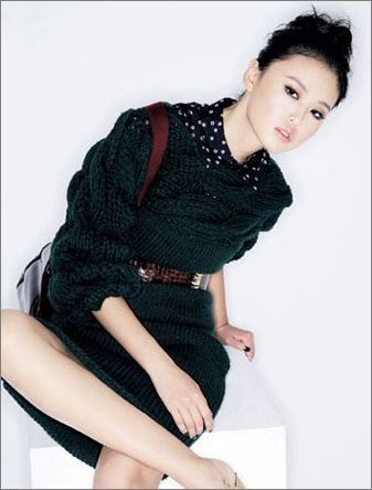 用腰带强调线条,改变长款粗针织衫的臃肿感。