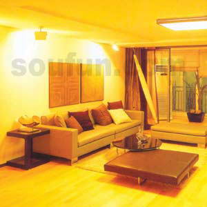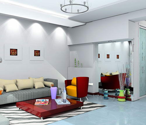 客厅是家庭居住环境中最大的生活空间, 也是家庭的活动中心,它的主要功能是家庭会客、看电视、听音乐、家庭成员聚谈等。 客厅室内家具配置主要有沙发、茶几、电视柜、酒巴柜及装饰品陈例柜等。由于客厅具有多功能的使用性, 面积大、活动多、人流导向相互交替等特点,因此在设计中与卧室等其它生活空间须有一定的区别,在家具配置设计时应合理安排, 充分考虑人流导航线路以及各功能区域的划分。然后再考虑灯光色彩的搭配以及其它各项客厅的辅助功能设计。
