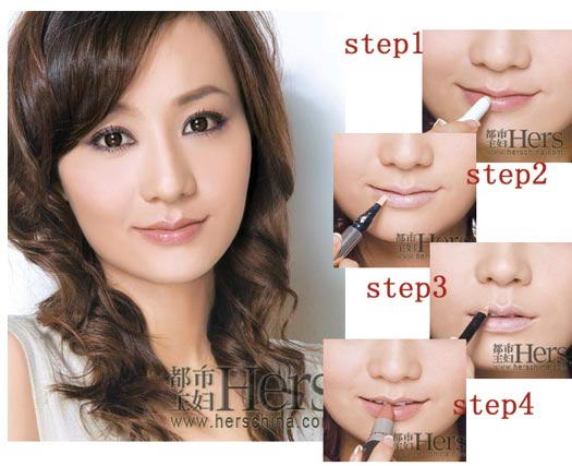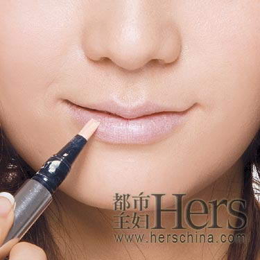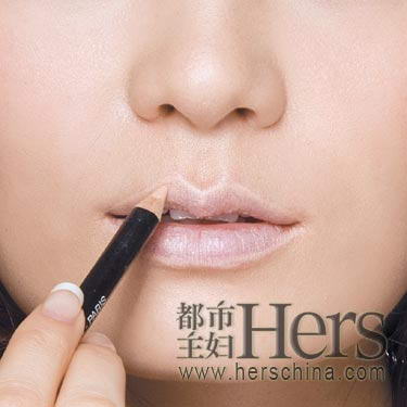 3.唇线的颜色选择与唇膏的颜色接近的。如果想要达到若有若无、好象自然唇型的效果,需要用接近肤色的米色唇膏线笔勾勒唇部轮廓。
