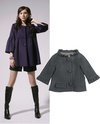 娃娃衫多数是比较宽松的款式,穿着舒适度上是不容置疑的 成熟又可爱的娃娃衫外套 编辑意见:娃娃衫今年意外走红,也许是因为大家都有些厌倦紧张的工作,复杂的生活了,想要找回一些童年的感觉。娃娃衫多数是比较宽松的款式,穿着舒适度上是不容置疑的,但是要小心在色彩上面不可以选择太鲜亮的,否则亮色的视觉扩张效果,加上宽松的款式会使你显得肥胖,而且会让人觉得你在刻意的装嫩。 推荐搭配:娃娃衫已经是很可爱的款式了,所以在其他装束的选择上就要避免太过显小,否则会埋没你的成熟气质。像这样搭配一条短裤和长靴,使下身显得更修长,也能够保持你的成熟魅力。