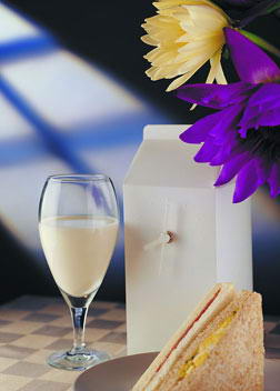 早餐搭配 营养师建议: 可以改喝低脂牛奶或脱脂牛奶,以减少一天的脂肪总摄取量;夹馅面包的热量、油脂量都偏高,不要常吃。如果想吃甜的,不妨选择吐司面包抹1小匙果酱。另外,可经常变换涂抹吐司面包的果酱品种,避免每天涂奶油(累积反式脂肪酸)、花生酱(累积黄曲霉素)和果酱(累积糖分),并且涂少一点。 两片吐司面包抹花生酱、奶油或夹一片低脂乳酪,再喝一瓶低脂牛奶或酸奶,是比较适当的选择。如果有时间,准备一些生菜、番茄、小黄瓜夹着吃,营养会更均衡 |