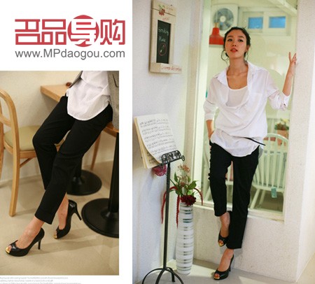九分裤+白衬衫 单说OL备有一条黑色九分裤就是超实用的东东,单说搭配白衬衫吧,上班的时候就叫人觉得精致能干,穿的松紧有度说话也更有说服力哦。