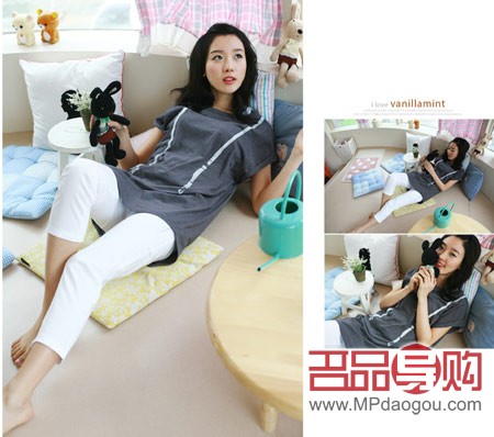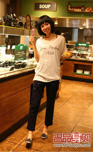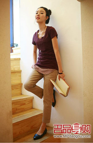 休闲长T+九分裤 细细腿穿9分裤一定好看,露出脚踝的那一段就很有味道,一双花哨的鞋子再次强调。如果搭配大圆领的T骨干美女显出超级舒适的休闲风貌。