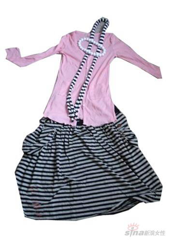 韩国风的条纹长裙+淡粉色长衫,让你走在韩国风的前沿