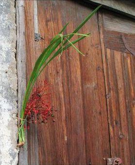 民间信仰认为五月为毒月,初五又是毒日。老北京人过端午节时大多在院门前和房檐挂菖蒲插艾叶。关于这个习俗也来源于赞扬善德文化:传说唐末农民 起义军黄巢在行军中遇到一位逃难的妇女,此女人抱着大的孩子,领着小的孩子,黄巢问她为何不抱小的孩子?女人答:大孩系邻居所托带,不敢有闪失;小孩是己 生,故用手牵之。黄巢感叹,命她在端午日家门前挂菖蒲、艾叶,可避兵灾。该妇女将此做法传告了乡亲,于是全村平安,以至成俗。