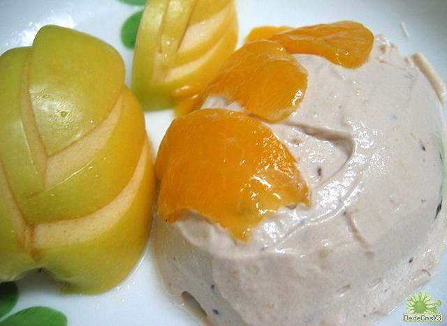 6、 将4和5搅拌均匀,放到冷冻室冷冻,等到它变成冰淇淋就可以吃了。