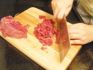1 牛肉洗净,逆着纹理切成片,加入1/2汤匙料酒、1汤匙酱油、1/2汤匙生粉、1汤匙油和1/2汤匙鸡粉拌匀,腌制15钟入味。
