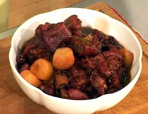 调料:盐、高汤精、白糖、香油、老抽、干辣椒、八角
