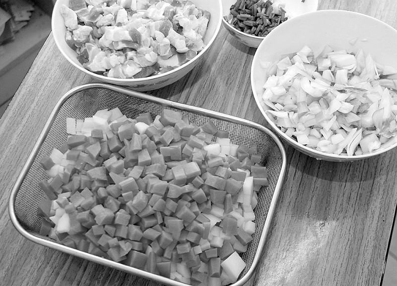 1、将五花肉、洋葱、土豆、胡萝卜切成2cm见方的小丁块;