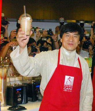 开幕后,成龙还亲自端着咖啡给客人品尝,有意思的是成龙的咖啡馆,就开在星巴克咖啡对面,颇有打对台的意味,为了看大明星,就连星巴克店员也忍不住在旁张望,看来成龙的魅力还是比咖啡大。