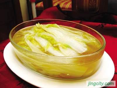 制作方法:将白菜心洗净切成12厘米长, 2厘米宽的条,放在开水锅里稍烫,捞在凉水中投凉控去水份,摆放在汤碗中待用;将鸡脯肉砸成细泥,用温热鸡汤把鸡泥解开;炒锅置火上倒入鸡汤加精盐,料酒,味精,胡椒面吃好味,把解好的鸡泥一半倒入锅中,用手勺轻推二至三下,待浮抹漂起,再侄倒另一半鸡泥使其浮起,端离火口,捞出鸡泥渣和浮沫即成清汤;将清汤灌在白菜碗中,上笼屉蒸八至十分钟,取出即可食用。