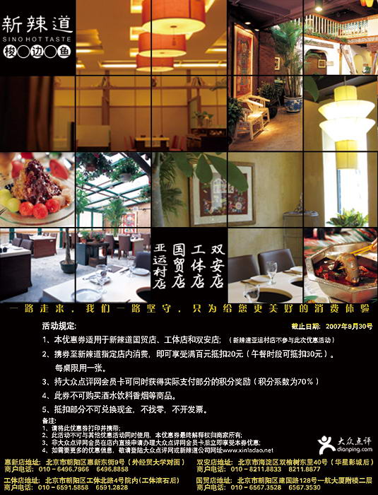 4.如需要更多的优惠信息,敬请登录大众点评网www.dianping.com。