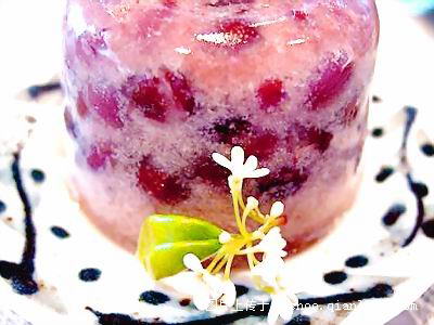 凉糕的制法:把江米淘净蒸熟,晾凉。用一块案板,用凉水冲一下,铺上一层揉碎的熟江米饭,抹上一层豆馅,共铺三层熟江米饭,两层豆馅,第三层用湿屉布盖在上边,用手拍平,撤去屉布,撒上青红丝,出售时用刀沾上水顺边往下切,放入盘内,撒上白糖即成。