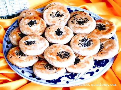 北京传统的特色风味小吃。牛肉麻饼具有麦黄色的扁圆形状,芝麻粘附均匀,口感酥松适口,含有牛肉、芝麻香味的特色。