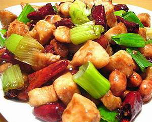 鸡胸脯肉、花生米、干辣椒、干花椒、酱油、醋、白糖、淀粉、姜,蒜,葱、盐、鸡精、料洒