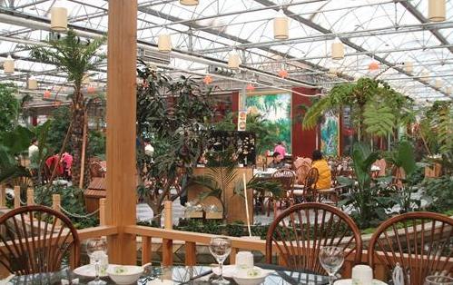 据说是“苗圃改造的”,环境“确实不错”。“小桥流水”,“鸟语花香”,“绿阴环绕”,“新鲜瓜果”随处可见。吃的是东北菜和海鲜,味道“不敢恭维”,价格还“不便宜”。不过吃完饭,逗逗小鱼、荡荡秋千,倒也“惬意得很”。