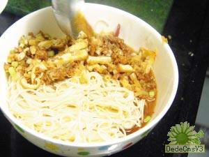 材料:龙须面(250克)、猪绞肉(196克)、老豆腐(1块,150克)、干黄花菜(25克)、干辣椒(5只)、八角(2粒)、桂皮(1小根)、葱(2根)、姜(2片)