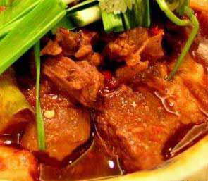红焖羊肉汤浓色重,酥烂不膻,冬天食用,既可享受拥炉欢聚的乐趣,又有滋补健身,生热避寒的功效。
