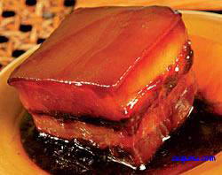 1. 原料必须选用皮薄、肥瘦相间的新鲜猪肋条肉(以金华“两头乌”猪为最佳),经汆煮定型,再用直刀切成大小均匀的方块(块的大小也可根据各人的爱好改刀);2. 以酒代水(也可加少许水),调料必须一次加足,以突出醇香的地方风味;