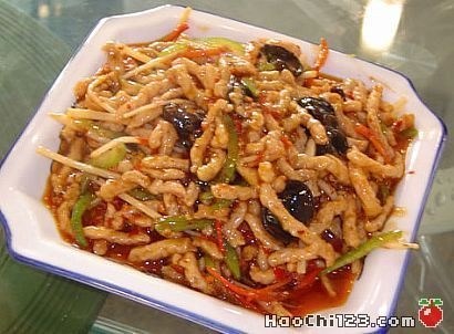 特点:咸甜酸辣兼有,姜葱蒜味突出,肉丝粗细均匀,色泽红亮。