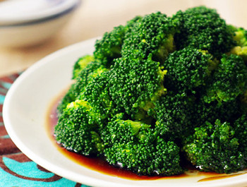 2. 过凉后的西兰花摆盘,倒入蒸鱼豉油。