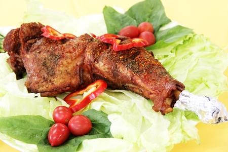 原料:市售烤火鸡腿1只,小长茄1只,青苹果1只、炸薯条半份、土豆2只,黄油10克