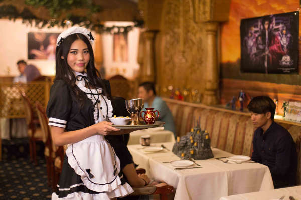 雅典娜的女神范固然是招揽顾客的王牌,但归根结底不得不佩服将这些创意变成现实的经营者。传统行业与动漫跨界结合并且获得不错成绩的并不多见,或许此举也将会推动餐饮消费文化发展的提升与求变方法。图为圣斗士主题餐厅里的“服务员”。