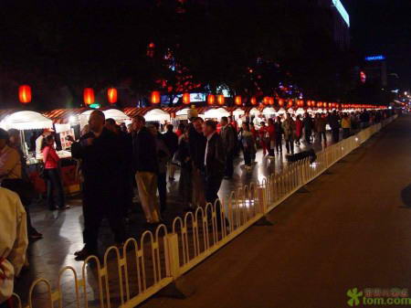 在北京南中轴在线,前门大街距今已有570余年的历史,素有「天街」之称。修缮后的新前门大街突出了现代商业功能和古都风貌相结合的特点。目前,除原本大 街上「土生土长」的月盛斋、一条龙、庆林春茶庄、全聚德等13家「老字号」全部回迁外,包括苹果计算机、星巴克、劳力士、阿迪达斯等在内的20多家国际知 名品牌也已签约,确定进驻。