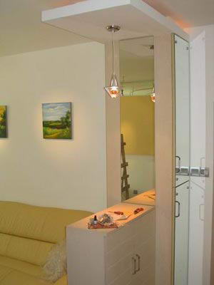 为了不让来客一眼就看到客厅,屋主一直希望入门处能作玄关隔屏。考量到实用及预算,设计师建议用鞋柜代替。虽然鞋柜的价格比玄关隔屏来得贵,但却比较实用,最重要也省了玄关隔屏的费用。