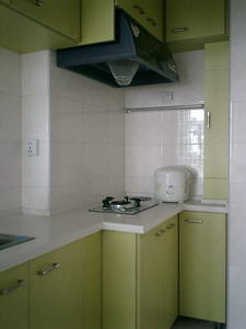 1.台面:应选用防火、防水材料制作台面。若做橱柜,最好用成品。台面的高度应以家里最常做饭的人的身高为依据来确定。通常操作台的高度为80~85厘米;水槽两侧一般应各有一个长40~60厘米的台面,一边供放置未洗过的菜,一边放置洗过的菜;如果餐桌不在厨房里,那么灶台边上还应设一块40~60厘米长的台面,用来暂时放刚出锅的菜。橱柜的背面要做挡水板,即背面要高出台面一些,以防止水流到橱柜的背面,使基材膨胀,造成开裂、脱落等想象。