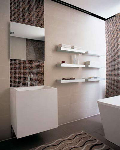 将往昔的魅力与现代生活结合在一起,永远是设计师创新的源泉。浴室家具门板上的刀切纹路,小巧古典的柜门把手,这些细节跟过去在旧电影中看到的 一样,呈现着一股凝固住时间的怀旧气息。只有注重整体细节,才会有完美无暇的整体效果。整面主题墙,无论色调、造型与饰物的摆放,都显得轻松而舒适,每日 一小时的卫浴时光成为乡野中的小憩,带着懒洋洋的悠闲气质。