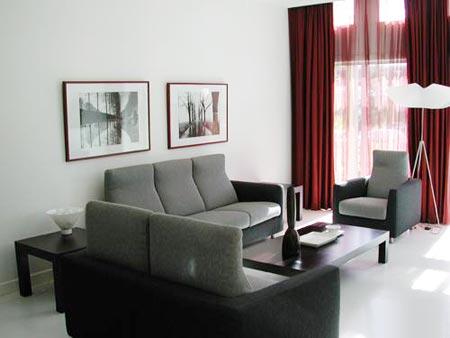 沙发区,黑灰白红色,四种颜色搭出品质感。