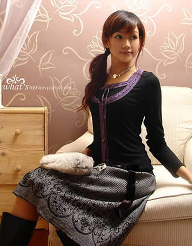 黑色针织衫搭配灰色裙子,深色系的搭配使人更深沉稳重。