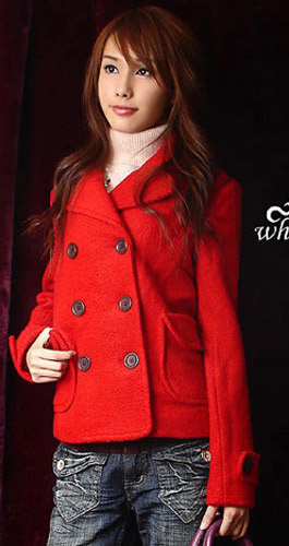 红色双排扣呢子外套