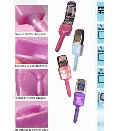 最高科技的工具:西方市场最近出现一种女性手机自慰器。从外形看它与一般的自慰器并没有分别,它的奇妙之处在于可以连接在手机上,当你把手机调到“震动”状态,它就便成一个移 动的自慰器了。发明此种自慰器的厂商说他们的产品使人可以“随时