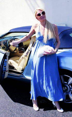蓝白格纹的宽松长裙想必是最有度假味道的裙装了,白色太阳镜、白色手袋、白色高跟鞋选择了长裙中的一色,色彩呼应的同时更让Paris Hilton心情好的不得了。